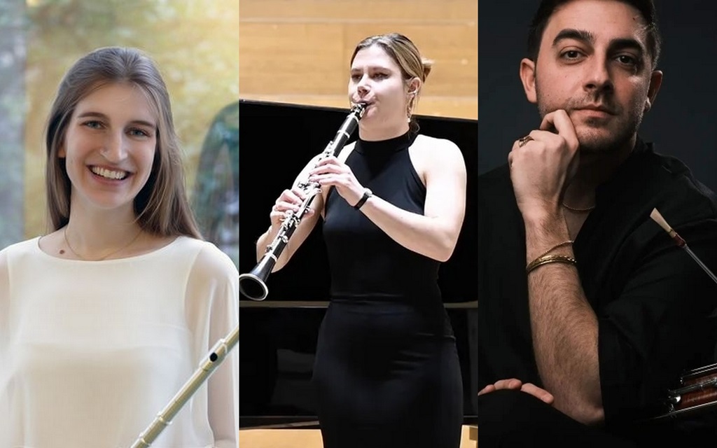 Verscheidenheid is een rijkdom… Célestine Wacquez (dwarsfluit), Moïra Michelazzo (klarinet) en Mavroudes Dakis Troullos (fagot) hebben verschillende achtergronden en ervaringen op belangrijke podia. Ze verkennen en beheersen hun altar ego-instrumenten door en door. Nu vormen ze samen / mu:v /, het spettelende trio met grote gevoeligheid en gedrevenheid als troef.